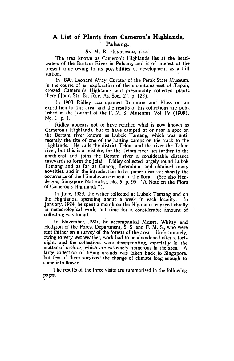 Title :A List of Plants from Cameron's Highlands, Pahang