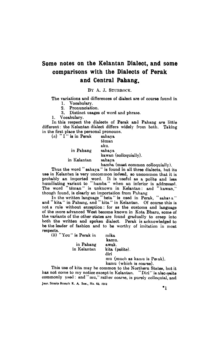 Title :Some Notes On The Kelantan Dialect, And Some Comparisons With The Dialects Of Perak And Central Pahang