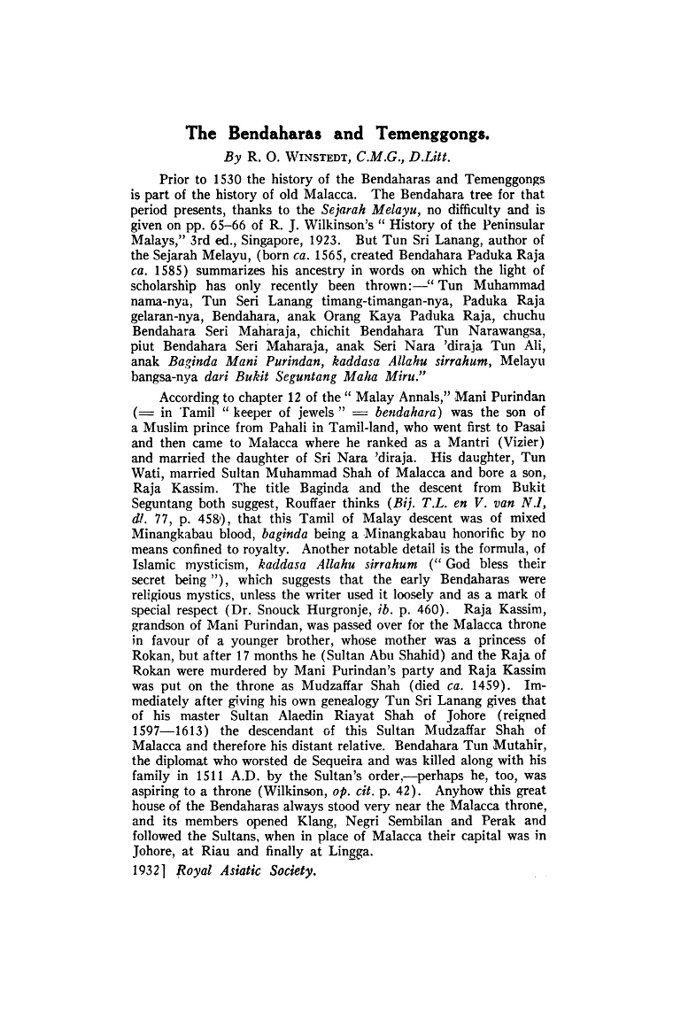 Title :The Bendaharas and Temenggongs